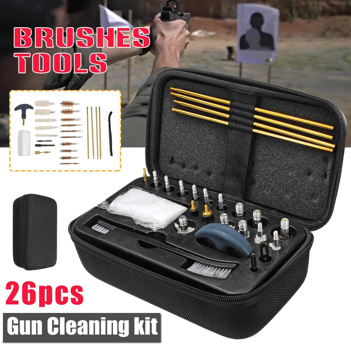معلومات اضافية العالمي بندقية تنظيف كيت ل بندقية مسدس مسدس بندقية طقم فُرش للماكياج المحمولة الألومنيوم حالة الصيد اكسسوارات